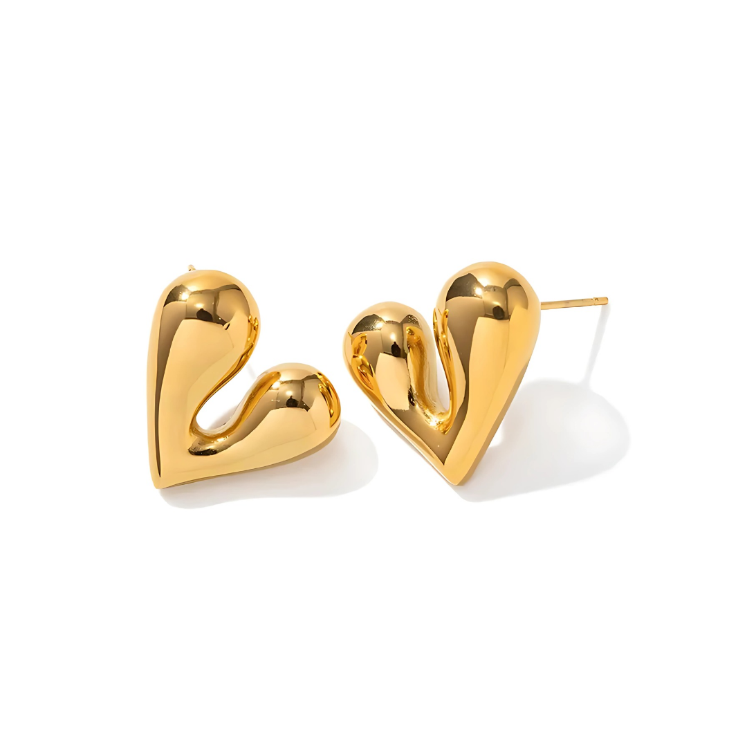 Crafted from durable stainless steel, these Amoré Gold Earrings feature elegant gold hearts that add a touch of luxury to any outfit. These timeless earrings are the perfect accessory for any occasion, providing both style and durability. Elevate your look with these stunning and versatile earrings.