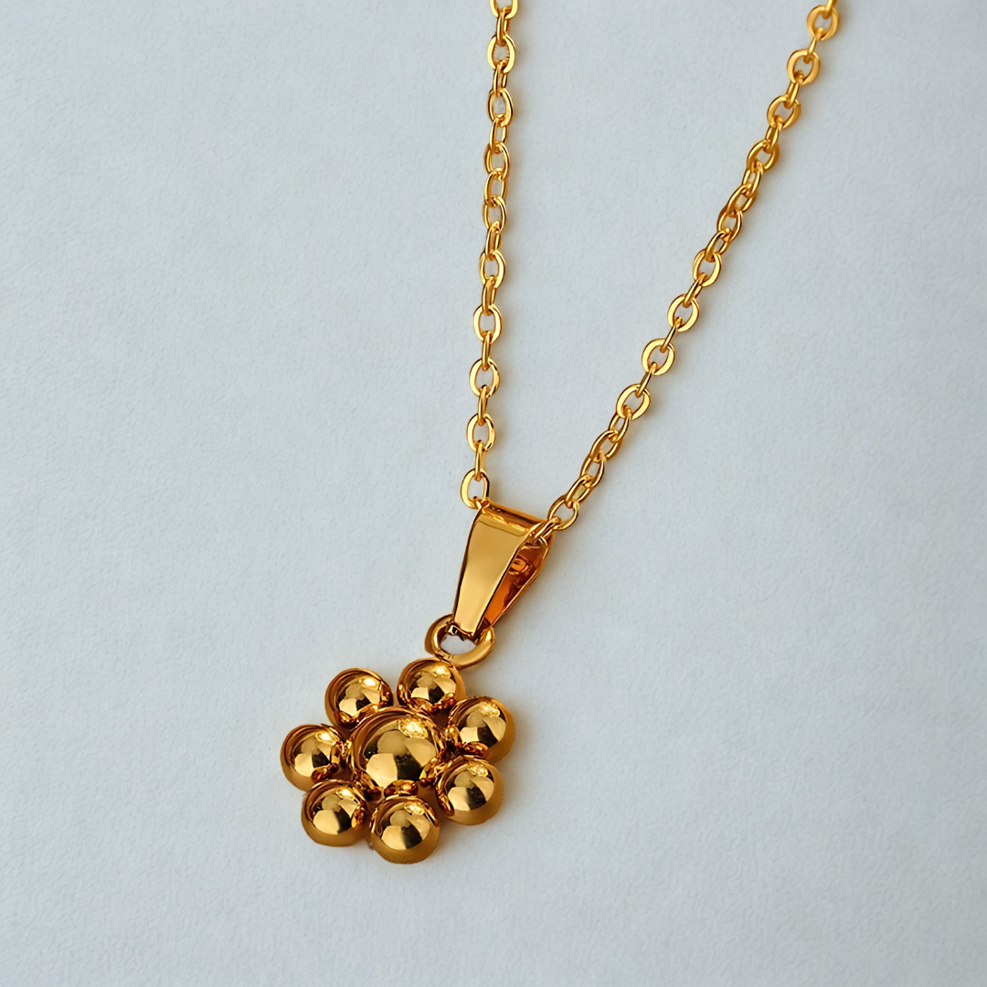 Add a touch of whimsy to your style with our Ball Flower Necklace! Crafted from stainless steel, this necklace is both durable and waterproof, making it perfect for everyday wear. The gold ball flower pendant adds a charming touch to any outfit.