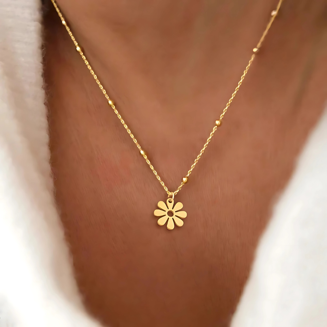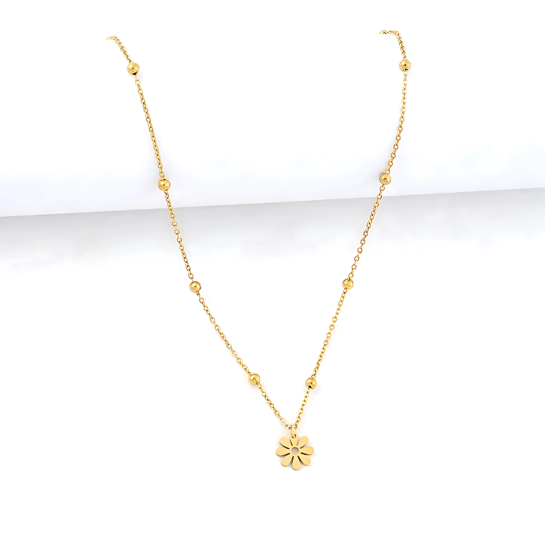 Add a touch of sunshine to your style with this Cute Gold Flower Necklace! Crafted from durable stainless steel, it shines bright and stays waterproof, perfect for everyday adventures. Its charming flower design brings a playful sparkle to any outfit, making you bloom wherever you go.