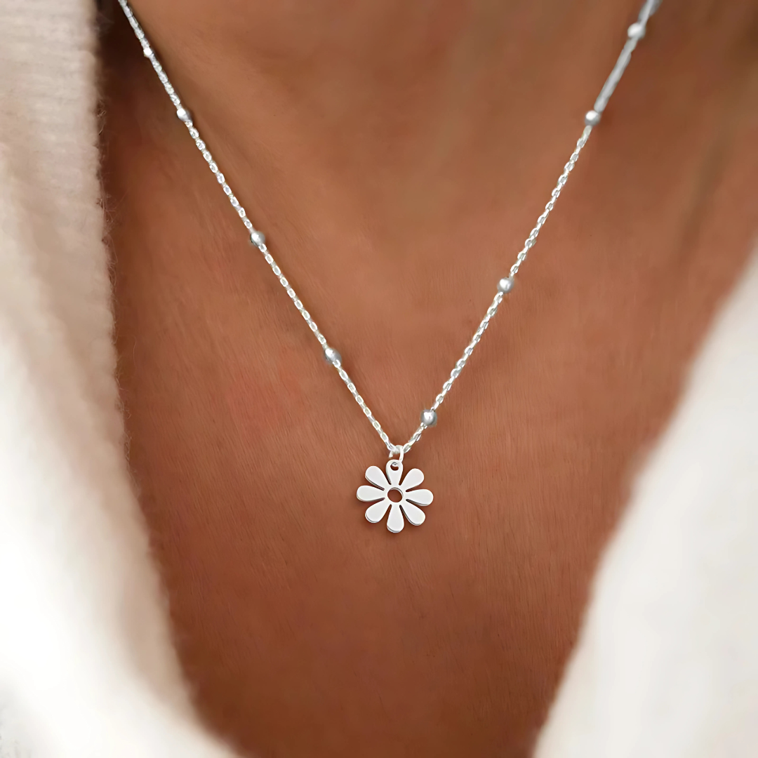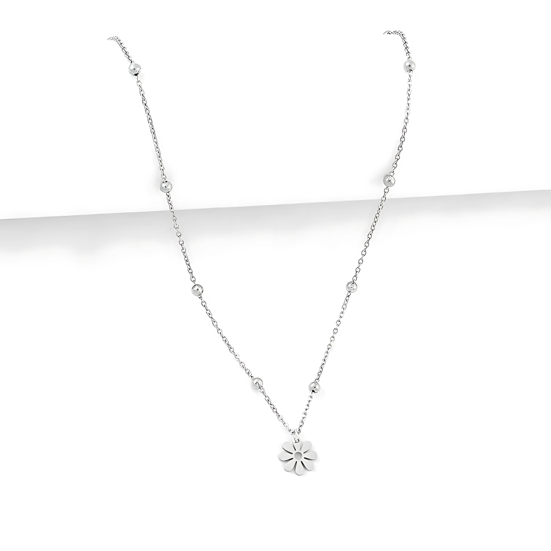 Add a touch of sunshine to your style with this Cute Silver Flower Necklace! Crafted from durable stainless steel, it shines bright and stays waterproof, perfect for everyday adventures. Its charming flower design brings a playful sparkle to any outfit, making you bloom wherever you go.
