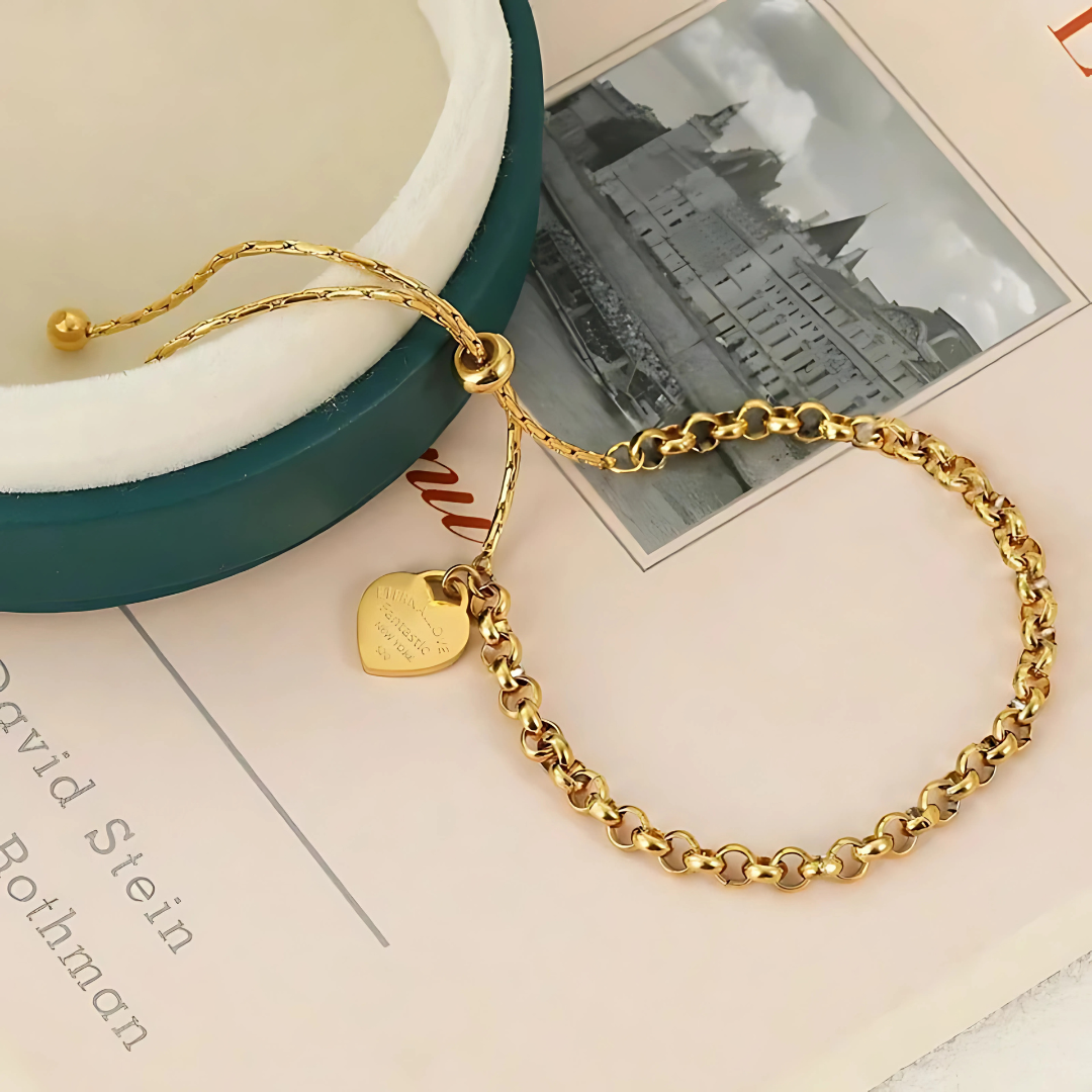 Add a touch of sparkle and love to your wrist with the Ever After Bracelet. Crafted from durable stainless steel with a shiny gold heart charm, it’s the perfect everyday accessory that’s both sturdy and sweet. Whether you’re gifting it or treating yourself, this bracelet promises to keep your heart close and your style effortlessly playful.