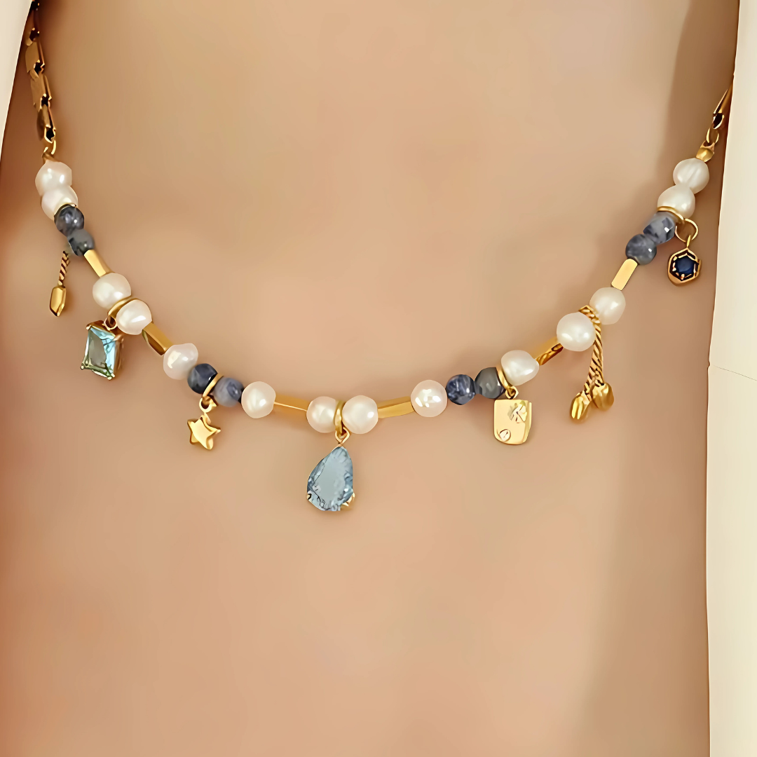 Add a splash of ocean charm to any outfit with the Ocean Whisper Necklace. Featuring lustrous white and blue pearls strung on stainless steel with a touch of gold, this playful piece captures the sea’s sparkling allure. Perfect for brightening your day or gifting a splash of coastal magic!