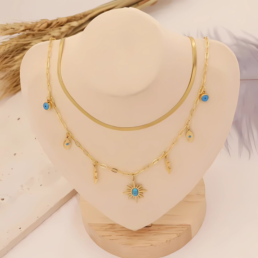 Add a splash of color and shine with this playful turquoise necklace, featuring an 18k gold bath over durable stainless steel. Its vibrant turquoise stone pops against the gleaming gold, making it the perfect accessory to brighten any outfit with a touch of fun and elegance.
